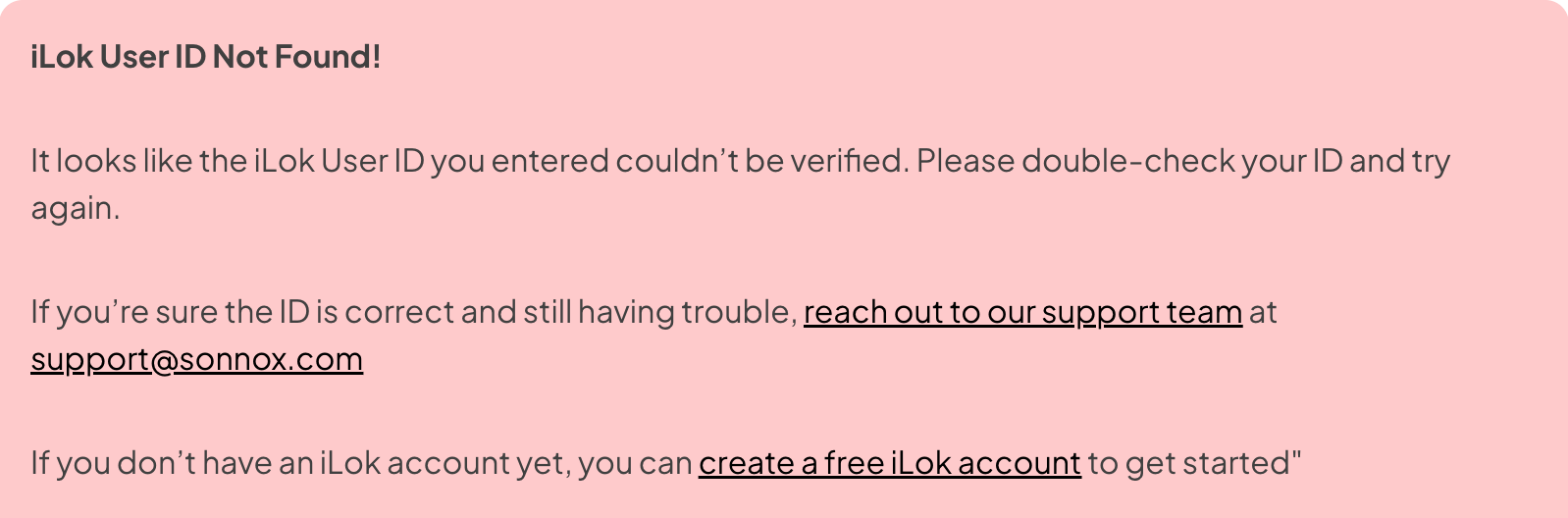 • The Sonnox system couldn’t detect a valid iLok account for the User ID entered.